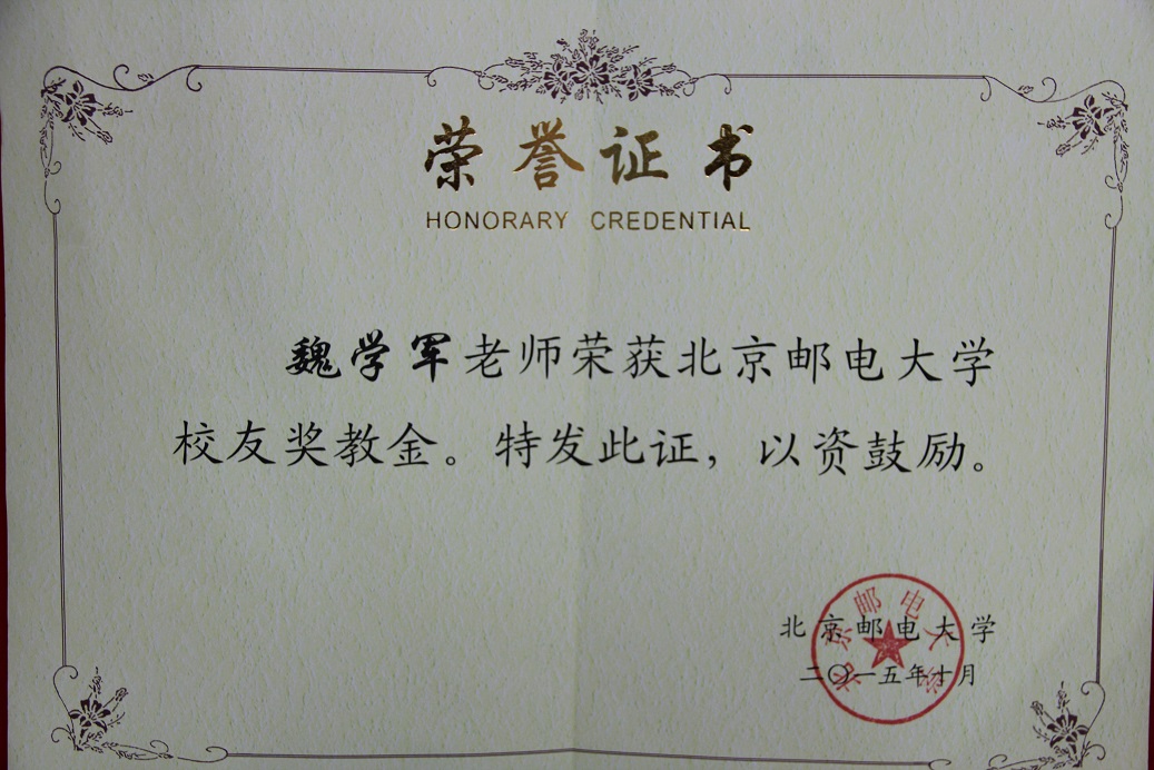 中心副主任魏学军老师荣获北京邮电大学校友奖教金