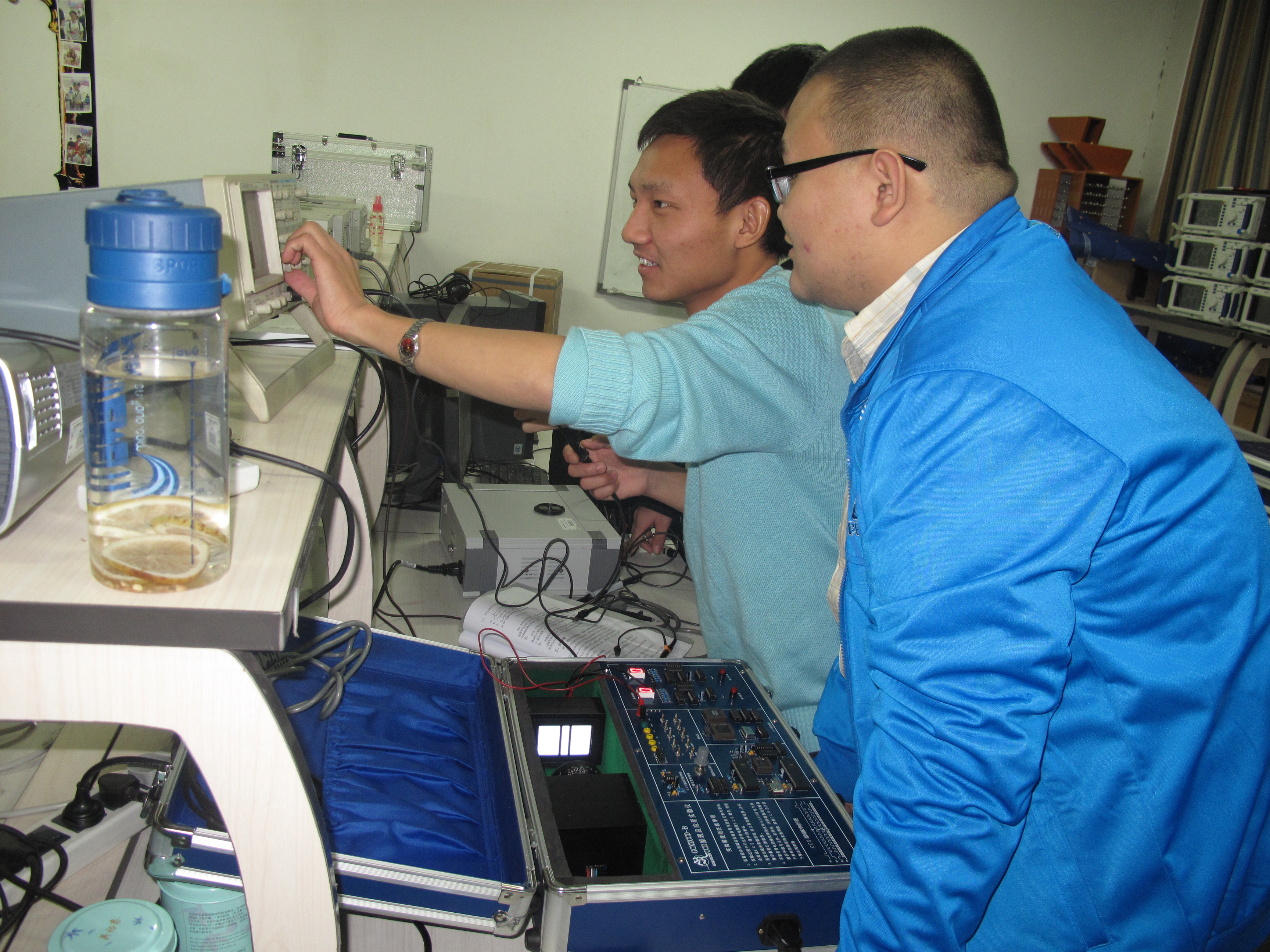 学生在电子实验教学分中心做实验