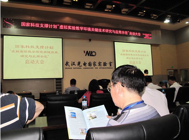 2010年6月1日上午,国家“十一五”科技支撑计划重点项目“虚拟实验教学环境关键技术研究与应用示范”启动大会在华中科技大学隆重召开。国家教育部信息化处张拥军处长、历晓华主任等领导,湖南大学李仁发教授、武汉大学何炎祥教授等项目顾问专家组专家出席了会议。