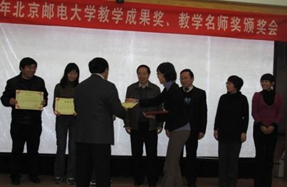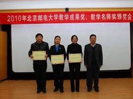 2010年12月9日下午,教务处在新办501组织召开了“2010年北京邮电大学教学成果奖、教学名师奖颁奖会”,表彰本年度校级教学成果奖、教学名师奖获奖教师。2010年我校共评选出校级教学成果奖31项,其中一等奖15项,二等奖16项。其中北京邮电大学虚拟实验技术研究室《计算机网络相关课程虚拟实验教学平台的研究与实践》获得北京邮电大学教学成果一等奖,文福安老师作为代表参加了此次会议。 我校方滨兴校长、温向明副校长、教务处孙洪祥处长、人事处刘建设副处长、各学院主管教学院长等领导出席了颁奖会,教学成果奖获奖教师代表、教学名师及各学院青年教师代表等共60多人参加了会议。颁奖会由教务处刘春惠副处长主持。